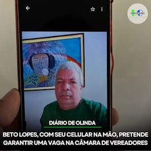 Com seu jargão “Beto Lopes, com o celular na mão e Olinda no coração”, busca o reconhecimento e a possibilidade de fazer mais por sua comunidade. Não duvidamos que a rede social seja um potente instrumento de comunicação. Agora é aguardar até outubro e ver o resultado.
