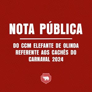 Não é somente pelo Elefante que fazemos essa cobrança pública, é pela salvaguarda e manutenção do nosso carnaval, pois sabemos que a situação enfrentada pelo CCM Elefante de Olinda é a mesma de outras agremiações e fazedores de cultura de nossa cidade. Finalmente, repudiamos tal situação e aguardamos que a Prefeitura de Olinda cumpra sua parte realizando os pagamentos devidos referentes ao ciclo carnavalesco de 2024.