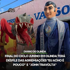 Olinda terá o fim do circuito junino em grande estilo. As agremiações “Eu Acho é Pouco” e “John Travolta” irão desfilar juntas no próximo sábado, dia 29.