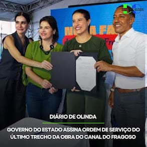 A governadora Raquel Lyra esteve ontem em Olinda e assinou a ordem de serviço do Canal do Fragoso, uma obra que se arrasta há mais de dez anos.