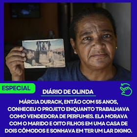 Márcia Durack, então com 55 anos, conheceu o projeto enquanto trabalhava como vendedora de perfumes. Ela morava com o marido e oito filhos em uma casa de dois cômodos e sonhava em ter um lar digno.