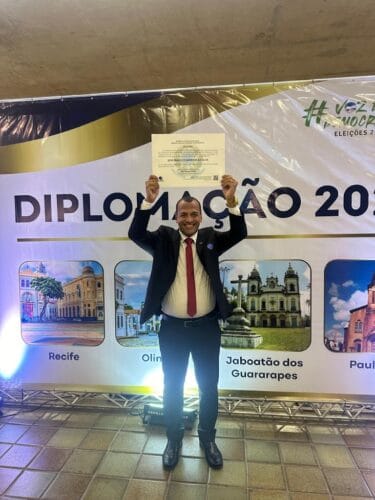 O vereador eleito Iran Barbosa (DC), que participou da cerimônia de diplomação realizada pelo TRE, assumirá seu primeiro mandato. Sua trajetória política teve início nas plenárias do Orçamento Participativo, um programa que democratizava as decisões sobre obras nas cidades.