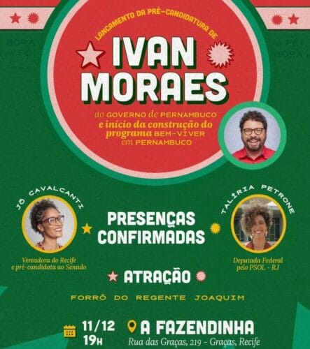 “No dia 11 de dezembro, as 19h eu te espero na Fazendinha, pra gente começar a construir um programa máximo, ousado e possível, pra superar as oligarquias e fazer valer o bem viver em Pernambuco”, ressalta Ivan.