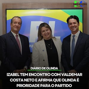 A pré-candidata Izabel Urquiza esteve em Brasília para se reunir com o presidente nacional do PL, Valdemar Costa Neto, onde tratou sobre o projeto eleitoral em Olinda.
