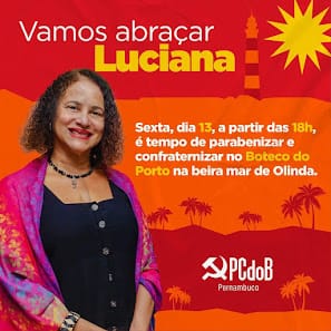 Junto ao seu partido, a ministra Luciana Santos convida os amigos para sua festa de aniversário e confraternização do PCdoB.