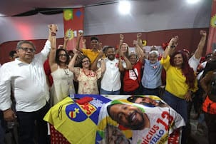Junto com os senadores petistas, Humberto Costa e Teresa Leitão, e seu vice, Celso Muniz (PCdoB), Vinícius Castello com alegria, sobretudo por ter sido o candidato mais votado na cidade, conclamou todos os presentes a estarem ainda mais ativos, pois unidos e com a força de Lula, Olinda irá mudar pra melhor.