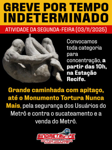 Desde a última semana, a categoria, junto ao sindicato, decidiram entrar em greve, manifestando-se contra o atual estado de desmonte e privatização do metrô do Recife.