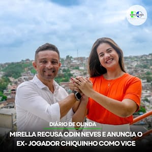 A pré-candidata Mirella Almeida (PSD) anunciou o ex-jogador Chiquinho (Solidariedade) como seu pré-candidato a vice-prefeito.
