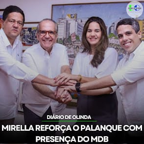 Depois de ter nomes como Marília Arraes e o ministro Silvio Costa Filho declarando apoio ao seu nome para a prefeitura de Olinda, Mirella recebeu o senador, Fernando Dueire, o deputado estadual, Jarbas Filho e o vereador Saulo Holanda, que anunciaram a presença do MDB em seu palanque.