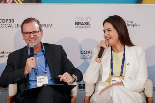 A Frente Nacional de Prefeitos (FNP) organizou na última terça-feira (04), no Fórum de Líderes Locais da COP30, no Rio de Janeiro, um debate com gestores municipais, tendo Mirella Almeida (PSD) e Eduardo Paes (PSD) como debatedores no espaço que fez a discussão sobre a necessidade dos municípios brasileiros, frente o contexto de mudanças climáticas.