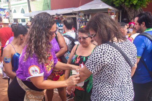 A iniciativa acontece em meio a folia, com abordagens diretas aos foliões e distribuição de materiais informativos.