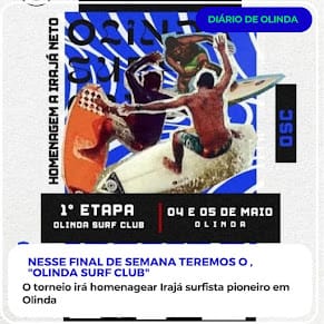 Nos dias 04 e 05 de maio, acontecerá aprimeira etapa do “Olinda Surf Club”, campeonato criado em 2021, com o intuito de levar a palavra de Deus e motivar a prática do Surf na cidade. O evento acontecerá na praia de Zé Pequeno e promete animar a orla da cidade, com as categorias Open, Master, Gran Master e Sub 14, mobilizando os amantes do esporte, de toda Região Metropolitana do Recife.