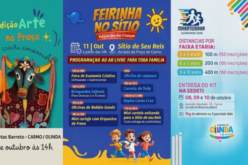 Encerrando o fim de semana, o domingo (12) — Dia das Crianças — será marcado pela primeira Maratoninha Olindense, com largada às 7h da manhã na Praça Duque de Caxias, conhecida como Praça do Quartel. A corrida reunirá crianças de 3 a 12 anos em diferentes categorias, celebrando o esporte e a alegria da infância.