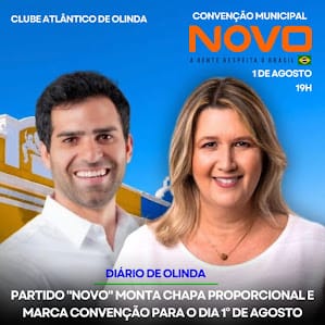 O Partido Novo conseguiu montar uma chapa para as eleições proporcionais (câmara de vereadores), e marcou a data de sua convenção para o dia 1° de agosto, às 19h, no Clube Atlântico.