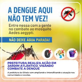 A prefeitura de Olinda vem ampliando e intensificando a atuação nas comunidades e escolas, visando o combate as arboviroses e proliferação do mosquito Aedes Aegypti. Desde a última segunda-feira (22), as equipes da vigilância ambiental, tem percorrido as ruas de Jardim Atlântico, visitando as casas, orientando e fazendo intervenções educativas, na intenção de proteger a população.