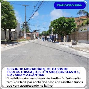 De acordo com um “síndico” de um prédio situado no bairro, que não se sentiu a vontade em se identificar, “Jardim Atlântico tem perdido a sua tranquilidade, durante o dia, os assaltos são constantes e a noite, a população dorme com medo, pois é o horário que os ladrões e ‘noiados’ saem a procura de objetos nas residências. Quebram as câmeras de segurança, destroem as lâmpadas dos poste e arrombam as residências e os carros”.