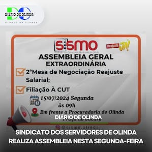 SINDICATO DOS SERVIDORES DE OLINDA REALIZA ASSEMBLEIA NESTA SEGUNDA-FEIRA
