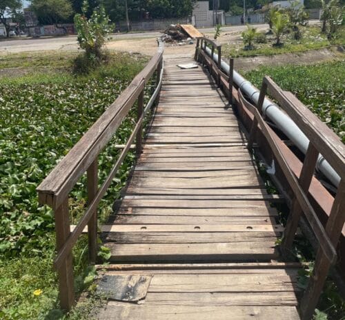 Mais de vinte anos depois, o cenário voltou ao ponto de partida. A falta de manutenção transformou novamente as ruas em lamaçais. Pontes deterioradas oferecem risco diário a quem precisa circular. O lixo se acumula. O canal está tomado por baronesas. A sensação é clara: abandono.